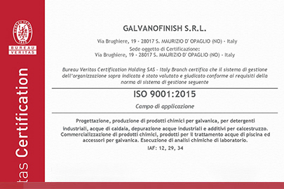 Galvanofinish s.r.l. è operativa dal 1982 nel settore chimico ed è un’azienda certificata UNI EN ISO 9001.